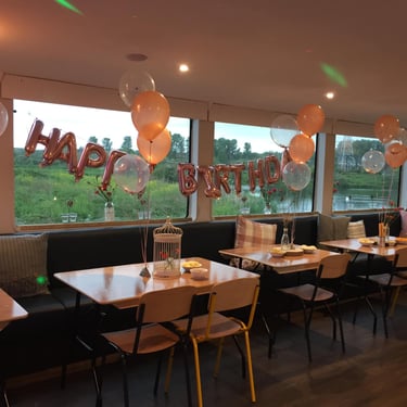 The boat is nestled in Midsummer Meadow, overlooking the nature reserve, river Nene and surrounding parks and green space. The main event hall can accommodate up to 45 guests for a sit down meal or up to 65 for a more informal get together. The room layout can also be adjusted to suit celebrations with a lower numbers of guests. The space has great acoustics for either a DJ or live music.